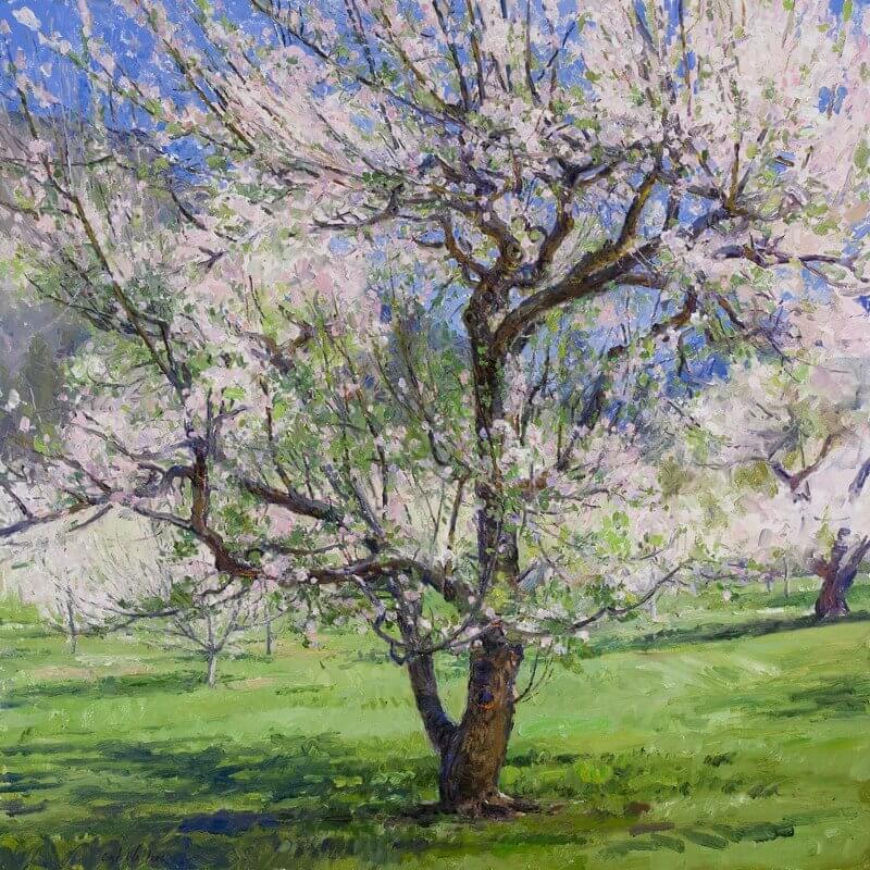 I have always been fascinated by the arborists’ craft, especially with regard to apple trees. This ancient agricultural art reveals manicured old wood bursting with new growth. These trees are an expression of the synthesis of man’s hands and nature’s bounty. I painted this at Garlands Lodge. This orchard is in one of the first homesteads in Sedona’s Oak Creek Canyon.